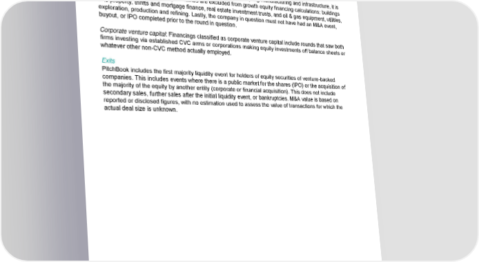 Also, if a company is tagged with any PitchBook vertical, excepting manufacturing and infrastructure, it is kept. Otherwise, the following industries are excluded from growth equity financing calculations: buildings and property, thrifts and mortgage finance, real estate investment trusts, and oil & gas equipment, utilities, exploration, production and refining. Lastly, the company in question must not have had an M&A event, buyout, or IPO completed prior to the round in question. Corporate venture capital: Financings classified as corporate venture capital include rounds that saw both firms investing via established CVC arms or corporations making equity investments off balance sheets or whatever other non-CVC method actually employed. Exits PitchBook includes the first majority liquidity event for holders of equity securities of venture-backed companies. This includes events where there is a public market for the shares (IPO) or the acquisition of the majority of the equity by another entity (corporate or financial acquisition). This does not include secondary sales, further sales after the initial liquidity event, or bankruptcies. M&A value is based on reported or disclosed figures, with no estimation used to assess the value of transactions for which the actual deal size is unknown. © 2017 KPMG International Cooperative (“KPMG International”). KPMG International provides no client services and is a Swiss entity with which the independent member firms of the KPMG network are affiliated. #Q2VC