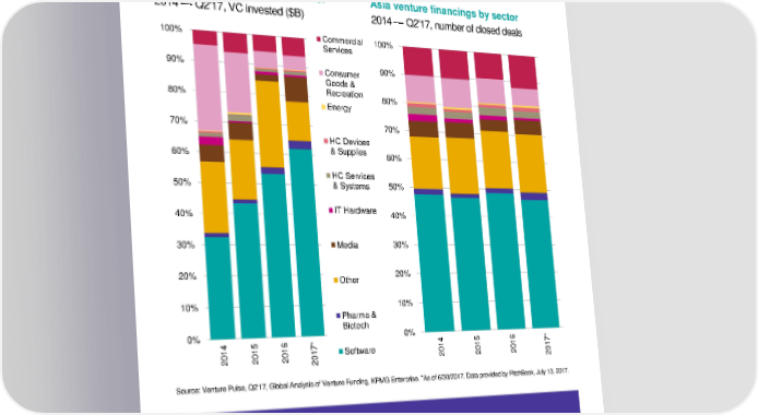 Asia venture financings by sector Asia venture financings by sector 2014 — Q2'17, VC invested ($B) 2014 — Q2'17, number of closed deals 100% Commercial 100% Services 90% Consumer 90% Goods & 80% Recreation 80% Energy 70% 70% HC Devices 60% & Supplies 60% HC Services 50% & Systems 50% 40% IT Hardware 40% 30% Media 30% 20% Other 20% 10% 10% Pharma & 0% Biotech 0% 4 5 6 * 4 5 6 * 1 1 1 7 1 1 1 7 0 0 0 1 Software 0 0 0 1 2 2 2 0 2 2 2 0 2 2 Source: Venture Pulse, Q2'17, Global Analysis of Venture Funding, KPMG Enterprise. *As of 6/30/2017. Data provided by PitchBook,July 13, 2017. “The total number of deals continues to drop, but the large size of some of these deals means that in terms of the total deal value, it was a pretty solid quarter. We remain very focused on fintech. AI and robotics continue to be a hot topic in China and health care is just going from strength to strength each quarter.” Patrick Imbach Co-Head of KPMG Tech Growth, Egidio Zarrella Clients and Innovation Partner, KPMG Hong Kong KPMG in the UK © 2017 KPMG International Cooperative (“KPMG International”). KPMG International provides no client services and is a Swiss entity with which the independent member firms of the KPMG network are affiliated. #Q2VC