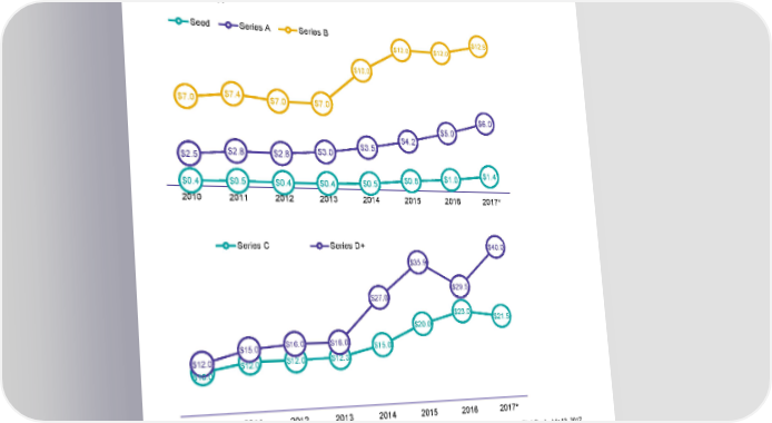 Global median deal size ($M) by series 2010 — H1'17 Seed Series A Series B $12.9 $12.0 $12.0 $10.0 $7.4 $7.0 $7.0 $7.0 $6.0 $5.0 $4.2 $3.5 $3.0 $2.8 $2.8 $2.5 $1.4 $1.0 $0.8 $0.5 $0.5 $0.4 $0.4 $0.4 2010 2011 2012 2013 2014 2015 2016 2017* Series C Series D+ $40.0 $35.9 $29.5 $27.0 $23.0 $21.5 $20.0 $16.0 $16.0 $15.0 $15.0 $12.3 $12.0 $12.0 $12.0 $10.0 2010 2011 2012 2013 2014 2015 2016 2017* Source: Venture Pulse, Q2'17, Global Analysis of Venture Funding, KPMG Enterprise. *As of 6/30/2017. Data provided by PitchBook,July 13, 2017. As more data points are aggregated throughout the passage of the year, it is clear that median deal sizes at every stage are either staying high or even increasing somewhat. This persistence can be attributed to hefty dry powder levels and continued demand for exposure to potentially high-growth assets. © 2017 KPMG International Cooperative (“KPMG International”). KPMG International provides no client services and is a Swiss entity with which the independent member firms of the KPMG network are affiliated. #Q2VC